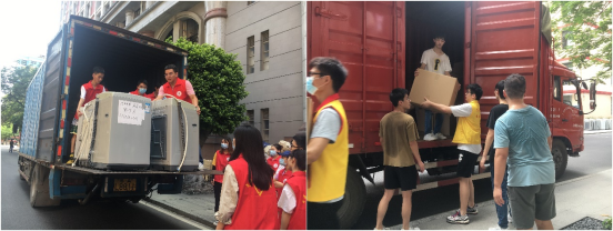 总务处在搬迁现场设置了物业报修服务点,及时对水、电、门锁等问题进行登记和应急维修。学生食堂延长了早午晚餐开餐时间。各学院积极组织校本部在校的本科生帮忙搬迁,并推出多项暖心举措。外国语学院为同学们统一打印装箱标识。公共卫生学院、药学院、卫生管理学院、基础医学院、生物医学工程学院设立了志愿服务点,准备了防暑降温的药品和饮用水,供有需要的同学取用,并为同学们提供休息、乘凉的地方。生物医学工程学院组织了30名党员志愿者帮忙搬迁,准备了小零食给同学们补充能量。基础医学院还为搬迁同学准备了拖把、洗厕剂等清洁用品。中医药学院设立了现场咨询点,为部分不熟悉校本部环境的同学答疑解惑。学生自律与权益委员会组织志愿者提供失物招领服务,帮助40多个学生找回行李,并协助校卫队开展交通安全引导工作。