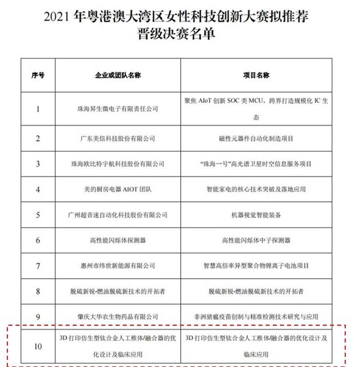 9月26日至27日, “2021粤港澳大湾区女性科技创新大赛”决赛上,我校基础医学院钱蕾代表团队获得三等奖,是广州市唯一决赛获得名次项目。