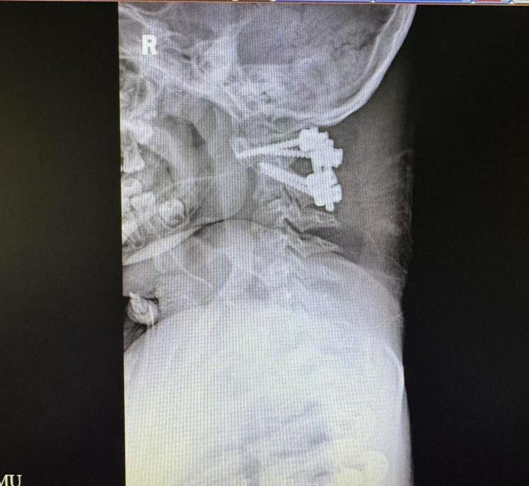 一个月前,福利院的工作人员突然发现乐乐下肢无力,起初只是走路不稳,后来发展到站都站不起来,在当地医院就医诊断为寰枢椎脱位。由于唐氏综合征患儿特殊的生理结构和较高的手术风险,福利院工作人员带着乐乐辗转多家医院均未能获得有效治疗。最终,经多方咨询,乐乐来到第三附属医院,由脊柱外科一科主任王亮接诊。