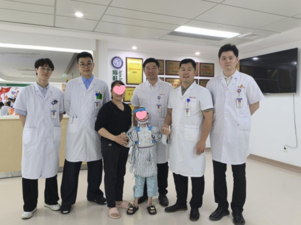 术后,医护团队为乐乐量身订制了康复方案:从最初的床上翻身训练,到辅助站立,再到步态练习和日常生活能力恢复,每一次进步都凝聚着医护人员的专业与爱心。术后一周,原先只能躺在平车上的孩子,终于带着自信的笑容,一步、两步,慢慢走向等候在病房门口的“家人”们。