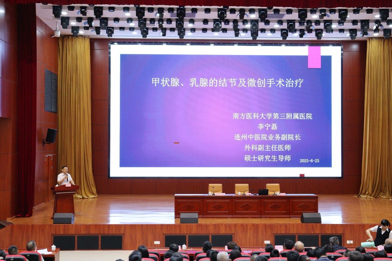 6月30日,为深入贯彻“早筛早诊早治”理念,推动省级优质医疗资源下沉,第三附属医院积极响应广东省“百千万工程”号召,由第三附属医院副院长、连州医院院长张群率普外科、胸外科、风湿免疫科专家团队,赴连州市委党校开展健康知识讲座。此次活动由中共连州市委办公室、市委保健中心联合主办,是第三附属医院深化医联体建设的重要实践。