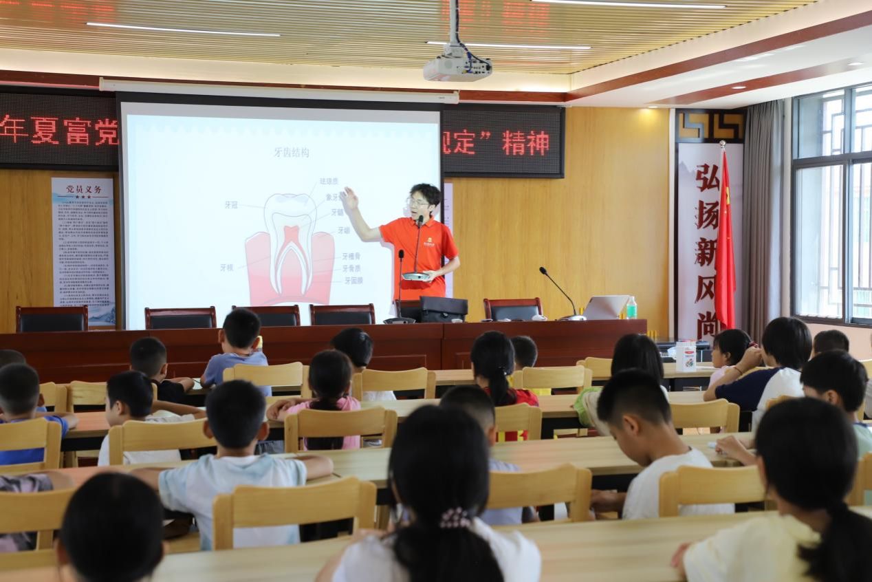 健康乡村,科普先行。突击队化身“健康尖兵”,在丹霞山景区入口设立科普驿站,醒目的爱牙护眼展板与趣味模型演示吸引大量游客驻足。队员们生动讲解,互动问答,让健康知识在轻松氛围中扎根。在白土中心小学,科普课堂聚焦未来希望。队员们用牙齿模型演示“圆弧刷牙法”,设计护眼游戏,孩子们清澈眼眸中闪烁的求知光芒,正是健康习惯薪火相传的见证。