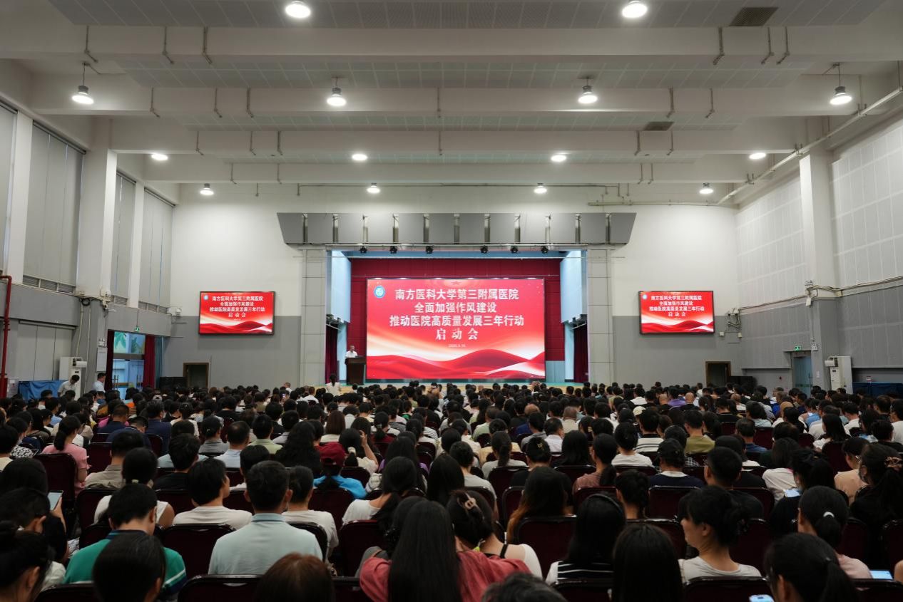 9月16日,第三附属医院启动全面加强作风建设推动医院高质量发展三年行动(以下简称“三年行动”),通过三年的集中整顿,使全院干部职工的思想作风、工作作风得到根本性转变,服务效能显著提升,患者满意度、职工获得感持续提高,清风正气更加充盈,为推动医院实现更高质量、更有效率、更可持续的发展提供坚强有力的保障。医院全体教职工参加了启动会。