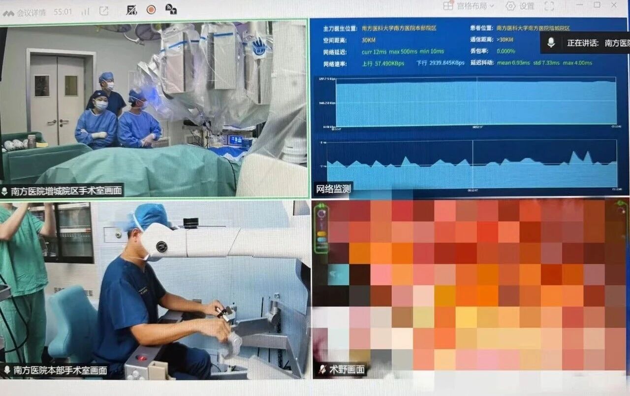这场手术的成功,离不开远程机器人手术系统的支撑。通过高速稳定的专用网络,主刀医生的操作信号被无损传输并实时还原,机器人手臂过滤手部震颤,实现0.1毫米级的精准操作,确保了手术的精准度。