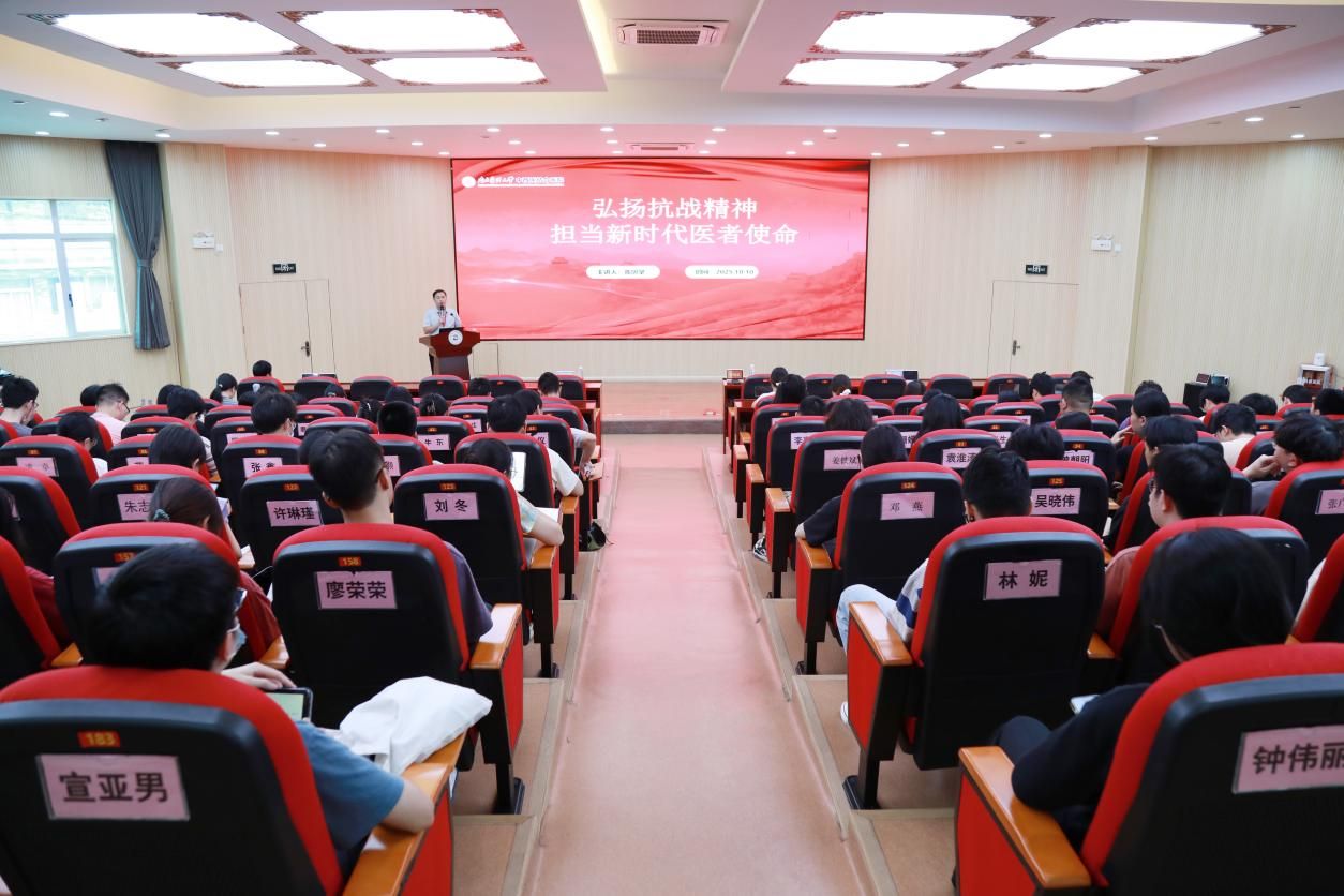 10月10日下午,中西医结合医院党委书记陈旭坚以《弘扬抗战精神,担当新时代医者使命》为题,在学术会议厅为全院研究生、实习生等150余名学生讲授秋季学期“思政第一课”,引导青年医学生从抗战历史中汲取精神力量,锚定新时代医者使命担当。