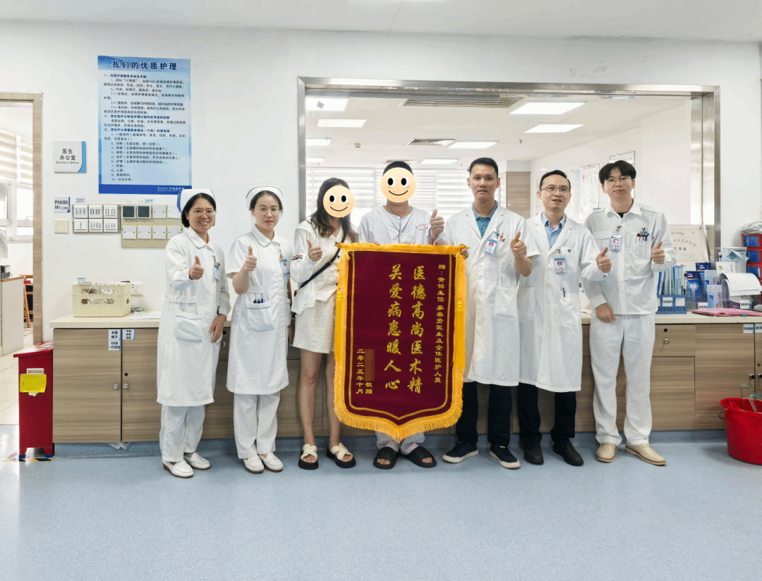 在术后恢复期间,医疗团队每日查房,密切监测文先生的肾功能恢复、伤口愈合及血糖情况,及时调整治疗方案。医护人员的精心照护与专业指导,让文先生和家属倍感温暖。出院时,文先生和家属激动地握着黄韬主任及团队成员的手,再三表示感谢。“发现这么大的肿瘤,我觉得天都塌了!是黄韬主任和这里的全体医护人员给了我信心,他们技术高超,每一步都解释得清清楚楚,对待我们像家人一样,每一个细节都想得非常周到,让我们感到非常安心。你们不仅救了我的命,还保住了我的肾脏,这份恩情我们全家永远铭记!”