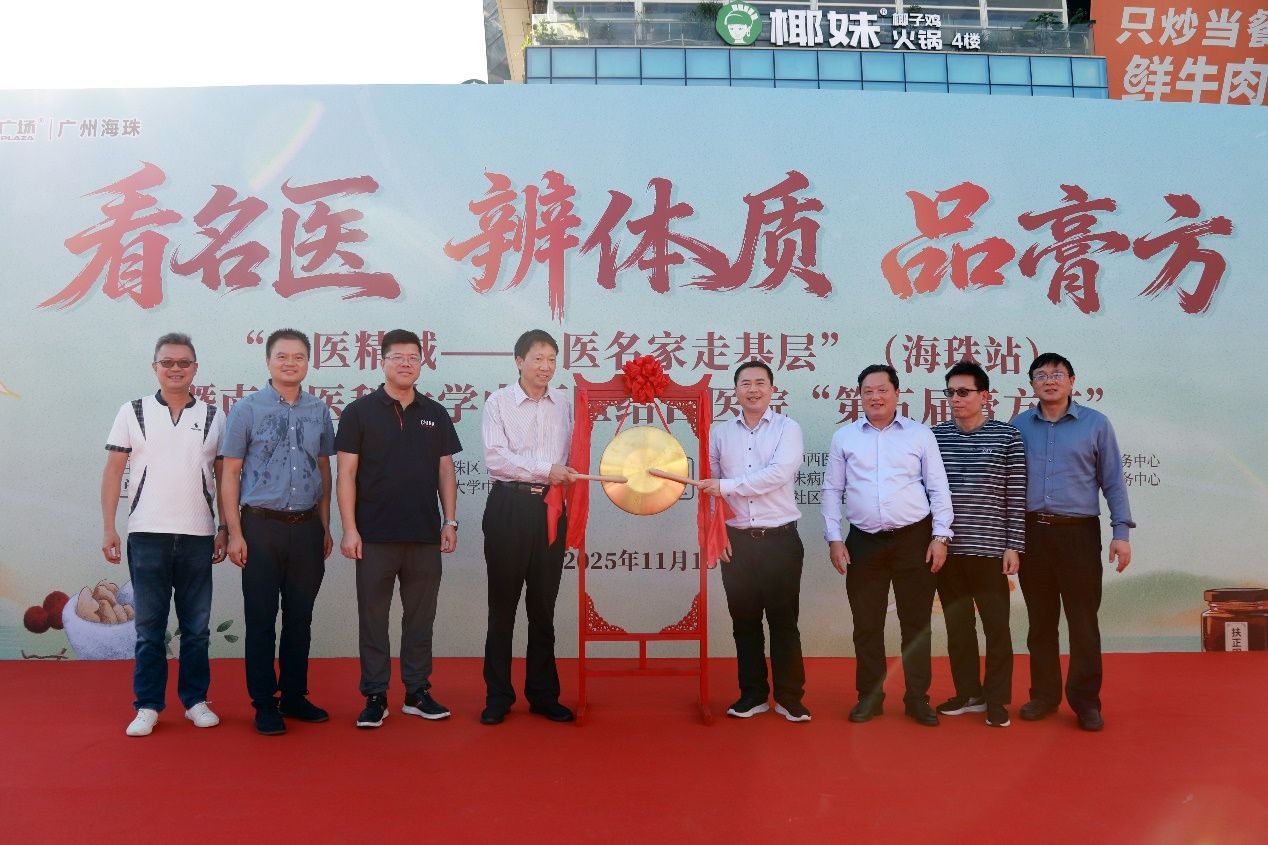 11 月 15 日,海珠区万达广场 1 号门外热闹非凡,一场兼具服务温度与文化厚度的中医药盛宴在此进行。为响应广东省 “健康科普进万家” 行动部署,由广东省中医药局主办,海珠区卫生健康局、南方医科大学中西医结合医院承办的 “大医精诚 —— 中医名家走基层”(海珠站)暨南方医科大学中西医结合医院第五届膏方节正式拉开帷幕。