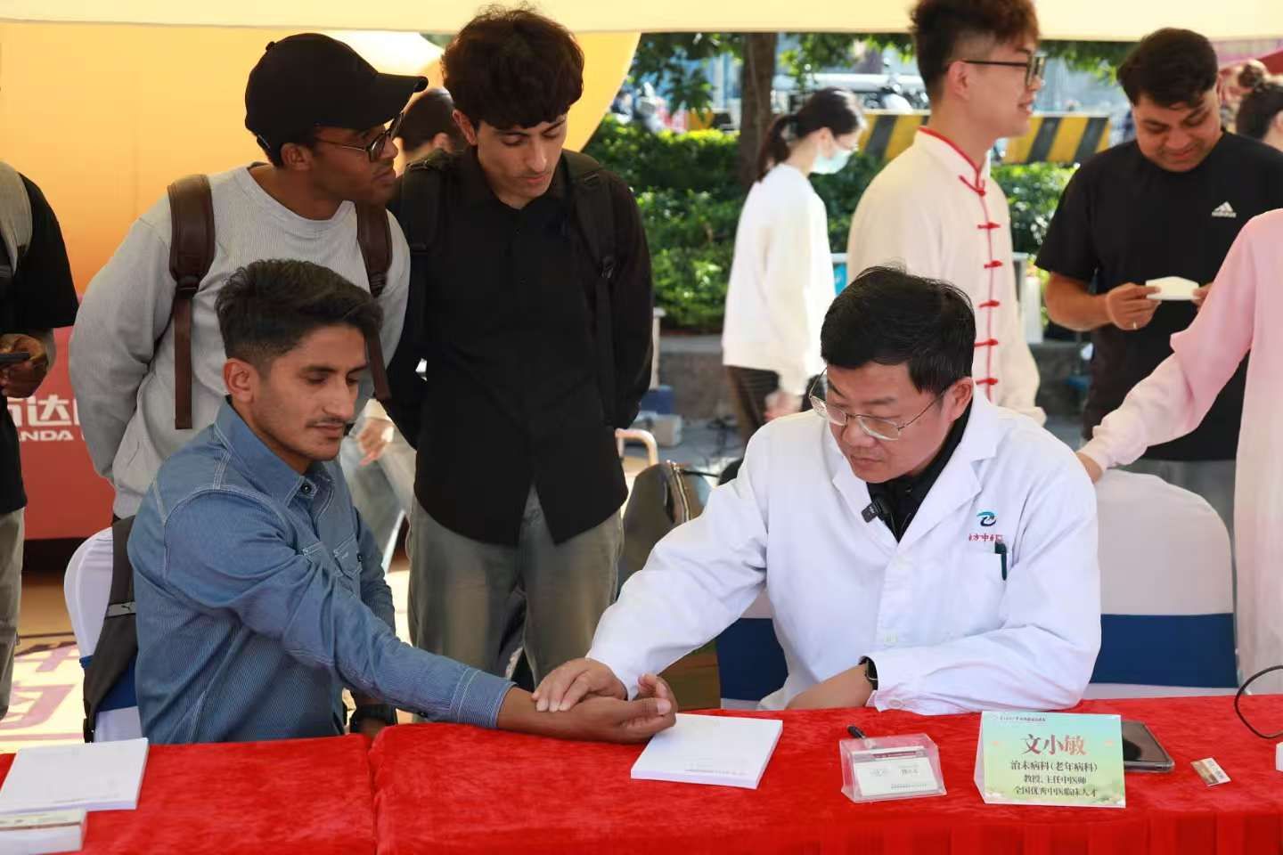 来自印度的解剖学博士研究生马诺杰,特意端起一杯现场熬制的中医凉茶细细品尝:“刚入口没什么浓烈味道,咽下去后,嘴里会泛起淡淡的薄荷味,特别清爽。”更让他惊叹的是中医的诊疗智慧:“我什么都没说,医生只是把了把脉,就准确说出我胃不太好,中医实在太神奇了!”留学生志愿者们亲眼看到现场市民对中医的信赖、亲身感受中医服务的实效后,才真正读懂了“中医治未病”的深层内涵,也对这门古老的东方医学产生了愈发浓厚的兴趣。