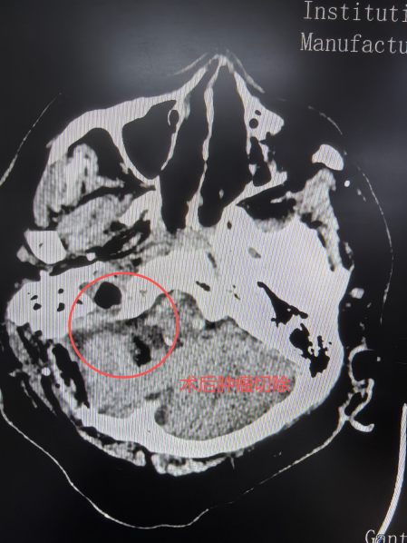 由于患者合并患有高血压、糖尿病、冠心病心脏起搏器植入等多种基础病,无法进行磁共振检查。其肿瘤体积比较大,累及椎基底动脉、脑干,与面神经、听神经、舌咽神经等多条神经,内听道骨质也有损坏,手术难度与风险极高。