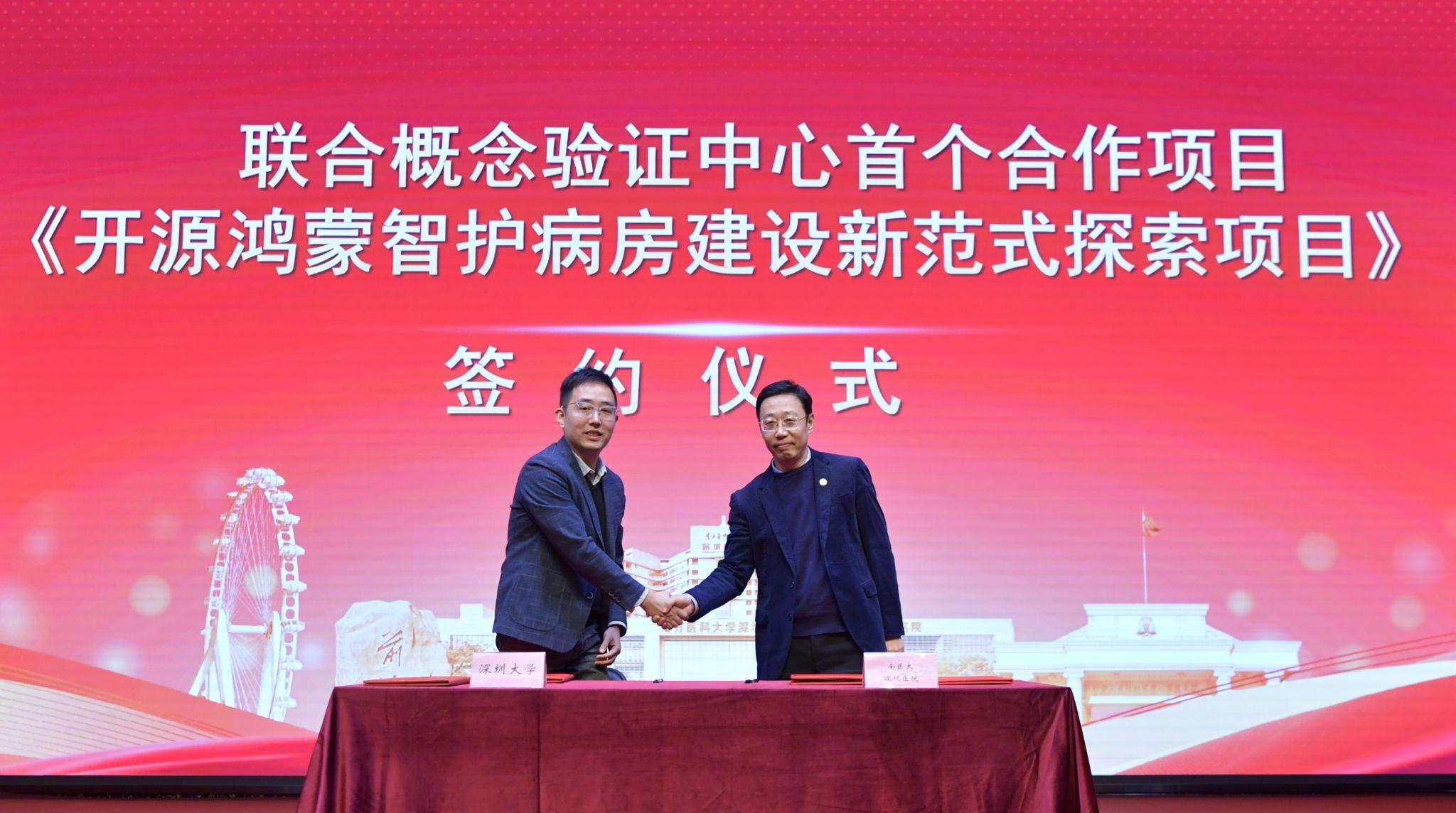 1月8日,深圳医院与深圳大学正式签署战略合作协议,共建“联合概念验证中心”,中心首个概念验证合作项目《开源鸿蒙智护病房建设新范式探索项目》也同步启动。此次合作,是双方在深圳市大力推进科技成果转化与医疗产业高质量发展的背景下,作出的一项具有重要战略意义的举措。