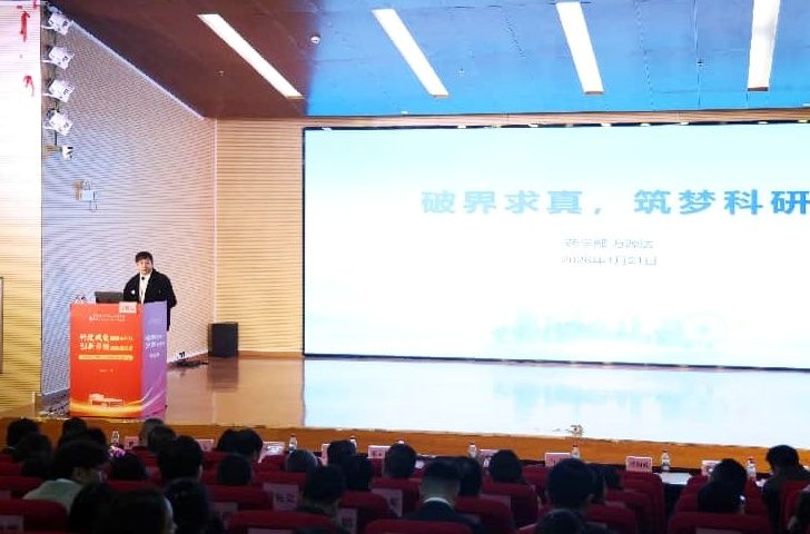 表彰结束后,科技创新工作者代表登台分享心得。药学部药师万源达、心血管内科副主任医师王航鹰结合自身工作经历,讲述了在科研攻关与临床技术革新中的探索与感悟,引发科技工作者共鸣,凝聚起携手前行、再攀高峰的坚定信心。