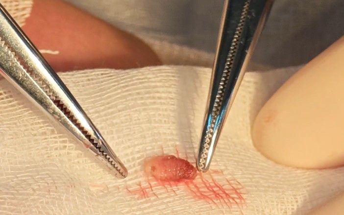 在严格的局部消毒与麻醉后,医疗团队精准切开皮肤,成功将皮下幼虫完整取出,随后对创口进行消毒、包扎,并为患者开具后续抗感染药物及护理指导。目前,患者创口恢复良好,相关不适症状已完全缓解。