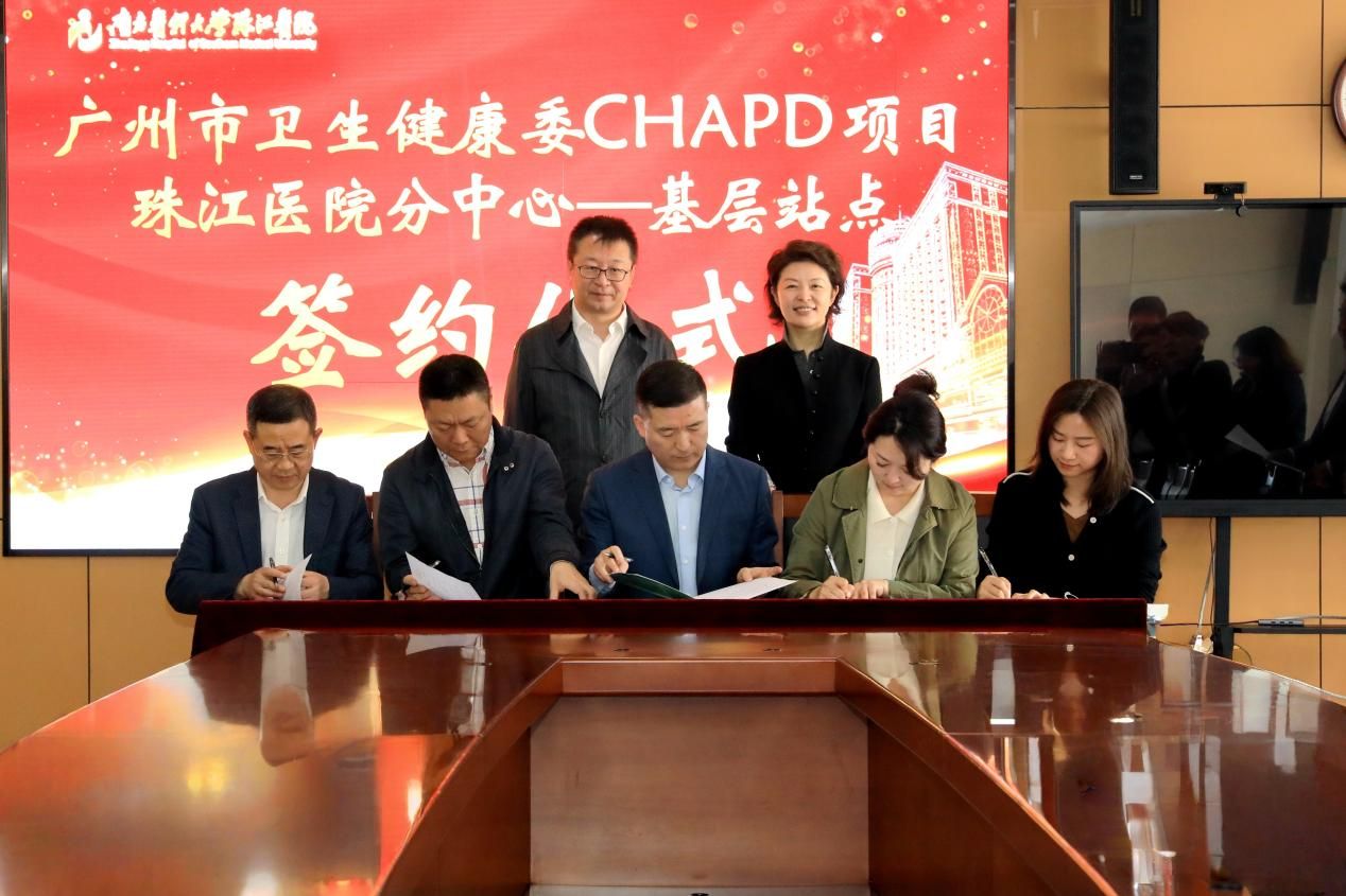 3月12日世界肾脏日之际,珠江医院举行中心监控居家自动化腹膜透析示范体系(CHAPD)项目签约仪式,与黄埔区黄埔街社区卫生服务中心、黄埔区南岗街社区卫生服务中心、海珠区瑞宝街社区卫生服务中心正式建立合作,共同推进CHAPD项目建设。