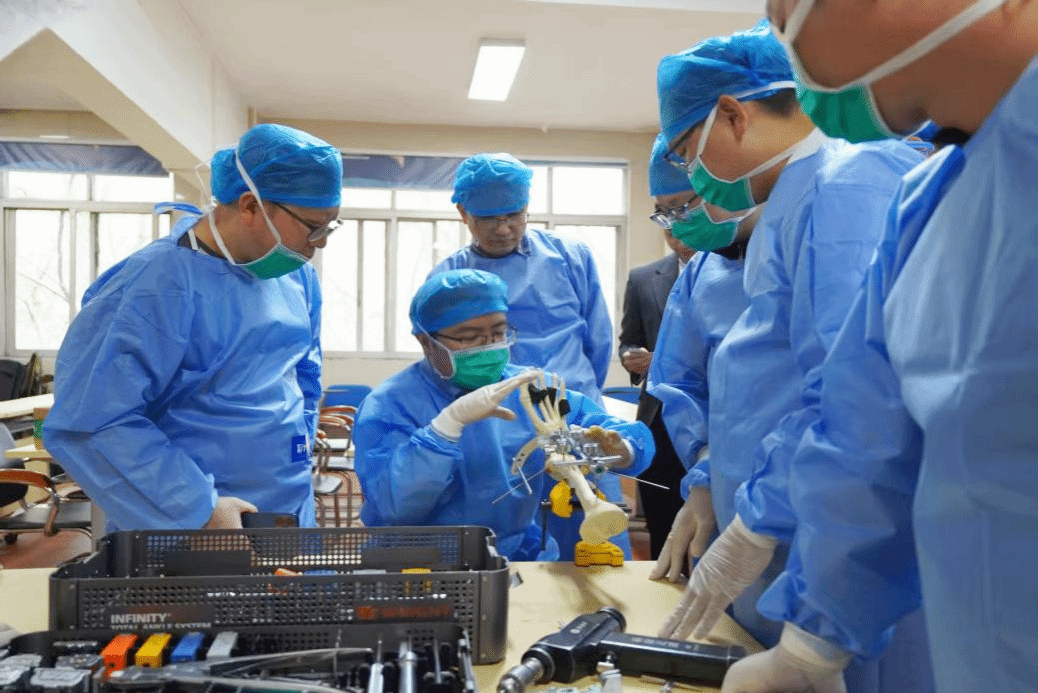 3月16日上午,部分学员深入临床一线进行门诊观摩,学习规范化的问诊、查体与治疗方案制定流程。多场高难度手术直播为学员提供了近距离学习前沿技术操作的机会。曾参军在手术直播中,结合Infinity全踝关节置换手术,对假体选择与临床应用要点进行了实时讲解与示教。宋卫东以《Infinity假体置换早期临床疗效》为题作专题报告,分享了全国首例Infinity踝关节置换的随访与经验总结,为国内同行开展该术式提供了临床参考。