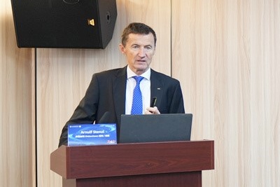 国际医疗中心主任孙嘉围绕医院发展概况、学科建设及国际医疗中心的特色服务作了系统介绍,全面展示了医院在医疗、教学、科研及国际化发展方面的综合实力。学术交流环节,Arnulf Stenzl以《Bladder Cancer 1850 - 2050 (personal reflections)》为题,结合其在泌尿肿瘤领域的临床与研究经验,分享了膀胱癌诊疗的历史变迁与未来展望,引发与会专家的积极讨论。围绕泌尿外科主任徐啊白围绕学科发展、人才梯队、临床特色及科研平台等内容作专题介绍,着重介绍了国产手术机器人在泌尿外科领域的临床应用与技术创新,充分展示了科室在微创泌尿外科、机器人手术、尿控修复等领域的技术优势与综合实力。