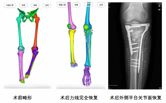 感染控制后,手术进入关键阶段。由于骨骼已畸形愈合,且患者希望同时矫正下肢力线和塌陷关节面,传统手术难以满足。