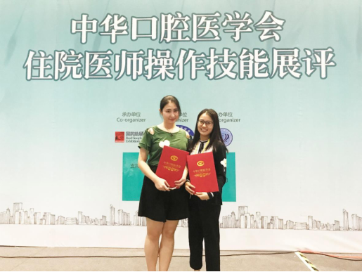 本次技能展评共由三个项目组成,分别是:前牙金瓷全冠修复牙体预备、牙周龈下洁刮治、口腔科普宣教。经过激烈的比拼,最终产生总分一、二、三等奖,以及单项技能前三甲。我校口腔医院2016级住培医师谭淑仪、湛敏康作为擂主参加了本次展评,并取得了优异的成绩。最终,谭淑仪、湛敏康分别荣获“中华口腔医学会口腔住院医师操作技能擂台展评”一等奖、二等奖,其中谭淑仪同时荣获口腔科普宣教单项一等奖。