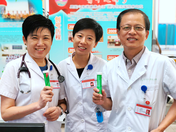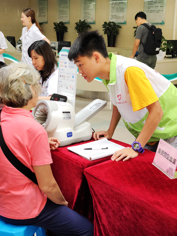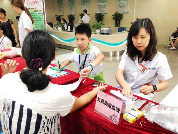 在8·19首个中国医师节到来之临,珠江医院在门诊大厅举行了“医路传承”大型义诊活动。出诊的5位专家分别来自2个家庭——汪森明、黄颉、汪嬿如一家,和闫玉生、闫璐父女档。5位专家耐心地为前来就诊的居民们提供肿瘤科、呼吸与危重症医学科、放疗科、胸心外科、皮肤科等相关疾病的医疗咨询。活动当天共接待就诊咨询近200人次,“医二代”小志愿者们为患者提供导诊、量血压服务,内分泌代谢科杨力母子档为患者提供测血糖服务,临床技能中心现场做了心肺复苏教学指导。
