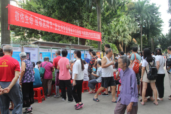 8月19日是首个“中国医师节”,为弘扬医师“敬佑生命、救死扶伤、甘于奉献、大爱无疆”的精神,南方医科大学中西医结合医院联合广东广播电视台《DV现场》继续开展“敬佑生命 把爱送到家”活动。这天上午,由彭康副院长带领10个科室共11名“贺运河学雷锋医疗志愿者”专家团队为市民把脉问诊,全国岗位学雷锋标兵、全国职工职业道德标兵,急诊科主任贺运河也不顾天气炎热来到现场义诊,现场还有医护人员免费测血糖、尿酸、血压、骨质疏松筛查,并教授护眼、护颈椎健康操,现场人气十足,专家们放弃休息用义诊的方式庆祝属于自己的节日,获得民众高度点赞。据统计,自“敬佑生命 把爱送到家”系列公益活动在广东广播电视台播出时通过网络平台同步传播后获得近100万人收看。
