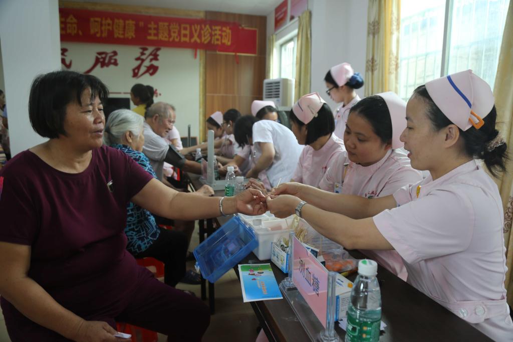 听说医院的专家来村里义诊了,村民们纷纷赶来,专家详细地解答村民提出的问题,根据他们的病情认真地检查身体,对日常用药、保健、饮食和易患疾病的防治等方面给予耐心指导。护理组一丝不苟地为村民测量血压、血糖等常规检查,快速地告诉他们结果,让他们再找专家进一步诊断。