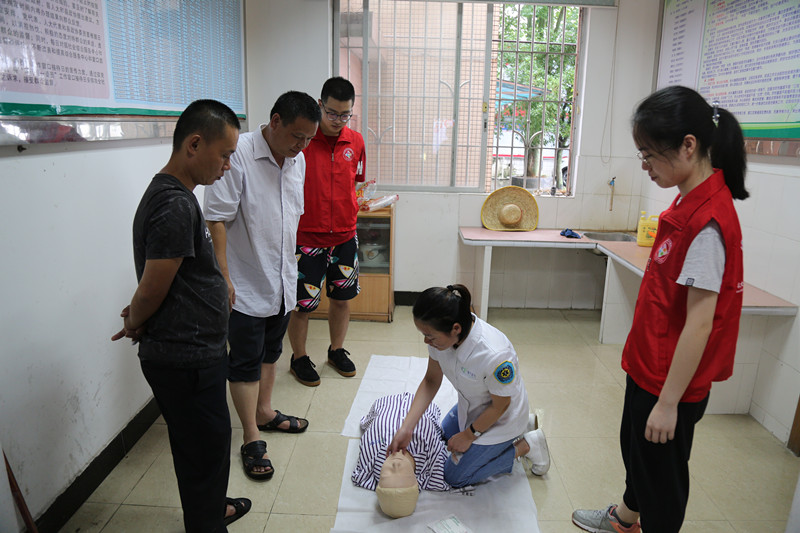 现场,消化科、内分泌科、中医科、脊柱骨科、眼科、健康管理科、药材科、急诊科等多个科室专家为广大群众解答健康问题,并免费提供测量血压、测试血糖、骨密度测量、用药安全咨询、应急救护培训等服务。义诊活动吸引了众多村民前来检查和咨询,医学生志愿者引导群众有秩序地排队检查,医生们“耳贴耳”服务群众,仔细询问身体状况并耐心分析病情,讲解注意事项,详细解答了村民们关于常见病、多发病的预防诊治及预后疑难问题。有些老人因语言不通而难以与医生护士交流时,学生志愿者便主动承担起了翻译的责任,为患者和医护人员间架起了沟通的桥梁。与此同时,医学生志愿者们与急诊科医生一起手把手教学心肺复苏和止血包扎,为当地群众上了一堂生动活泼的急救课;并将最近大火的歌曲《卡路里》改编成急救歌并在义诊现场唱了起来:“快快,CPR,两个要点要牢记,胸外按压五厘米,人工呼吸加进去……”,歌曲将急救知识变的通俗易懂,寓教于乐,吸引了广大群众的眼球。南方医院共为当地村民免费派发了价值6000余元的药品。