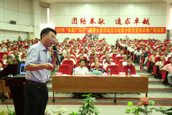 9月15日下午,中西医结合医院、南方农村报社、龙川县卫计局三方合办的中医适宜技术推广培训班在龙川县第一中学高中部学术报告厅举行。2018“名医广东行”公益活动今年还先后在德庆、南雄、阳东举办了4场中医适宜技术推广培训班,共培训基层医生1200余人次,旨在推动省级先进医疗技术下沉基层,更好地服务当地群众,促进健康中国建设。