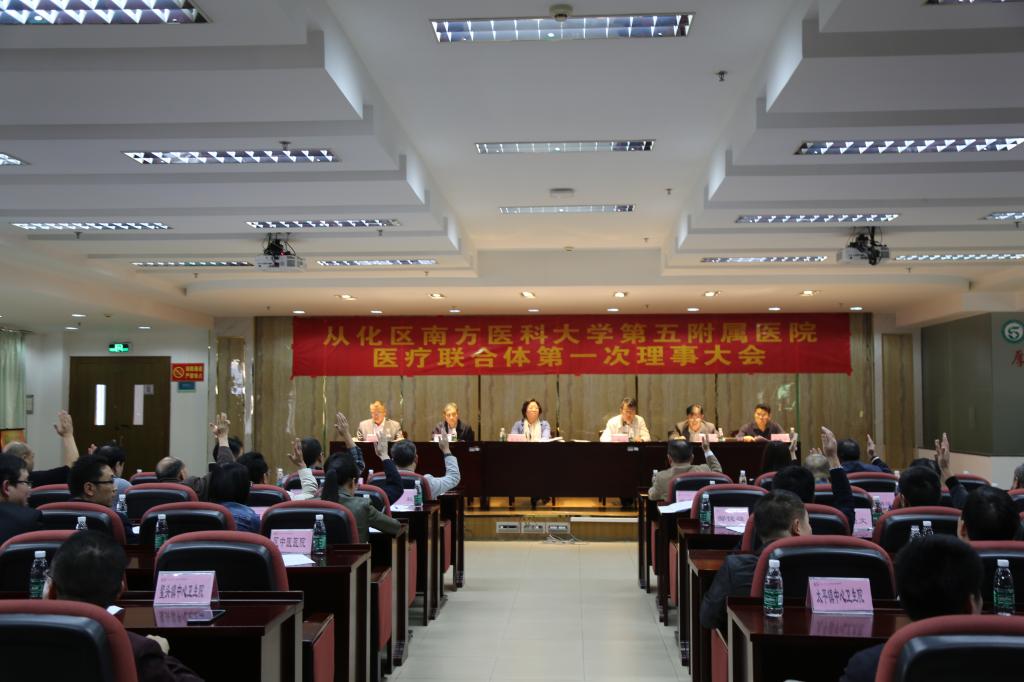 会议详细报告了成立从化区南方医科大学第五附属医院医疗联合体理事会的筹备工作情况,讨论并通过了《从化区南方医科大学第五附属医院医疗联合体第一次理事大会的选举办法》和《从化区南方医科大学第五附属医院医疗联合体第一次理事大会的总监票人、监票人和计票人名单》,并以无记名投票方式选举产生第一届理事会组织架构:五附院院长邹小明担任理事长,副院长钱毅、金来明和其他一些医疗单位领导担任副理事长, 医教部主任张文君任秘书长,其他理事15名。
