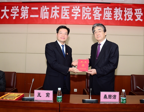 会上,王前为森田洁颁发客座教授聘书,他表示,通过珠江医院、日本冈山大学共同努力,加强医疗与科研方面的合作,特别是在本科生、研究生以及更高层次人才的培养提供平台渠道,达到优势互补、资源共享、注重实效,共同发展的愿景。
