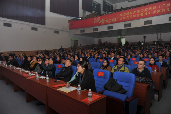 晚会开始前播放了医院宣传片,回首了医院五十六载筚路蓝缕,立足口腔保健半个世纪,一步一个脚印走过峥嵘岁月。自2017年1月1日起,医院划转南方医科大学管理以来,医教研防都取得了长足的发展。张玉润、莫乔锋对2018年获得国家自然科学基金项目立项奖励的邵龙泉、李少冰、张超、徐帅妹,医院14名“服务明星”以及10-14年无投诉医生进行了颁奖。