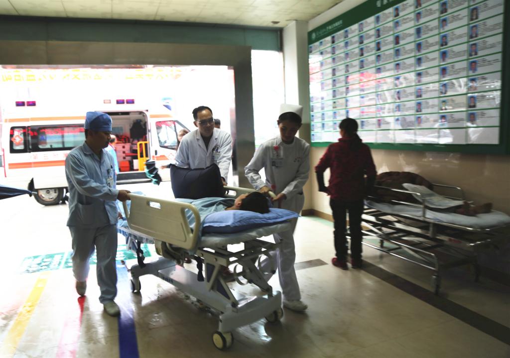 医生孟越、护士杨坤彦和两名担架工接到通知后,马上放下碗筷,火速登上救护车向现场驰援。
