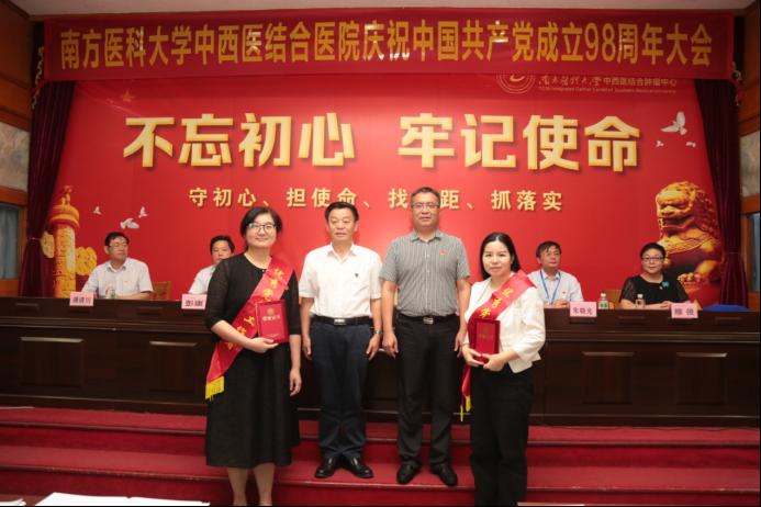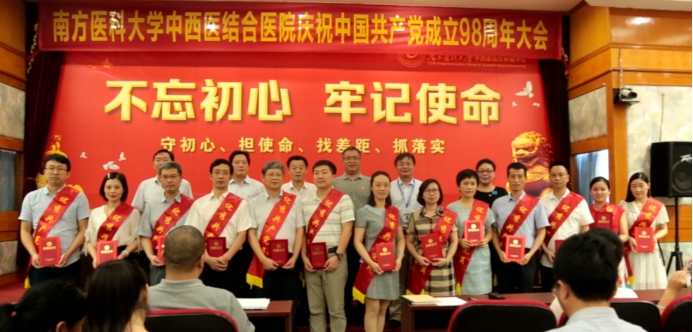 为隆重庆祝中国共产党成立98周年,进一步提升党组织凝聚力,增强党员荣誉感、责任感和使命感,6月27日,中西医结合医院召开庆祝中国共产党成立98周年大会,并表彰了一批勤于工作、忠于职守、乐于奉献的优秀共产党员、优秀党务工作者和在医院发展建设过程中充分发挥战斗堡垒作用的党支部。