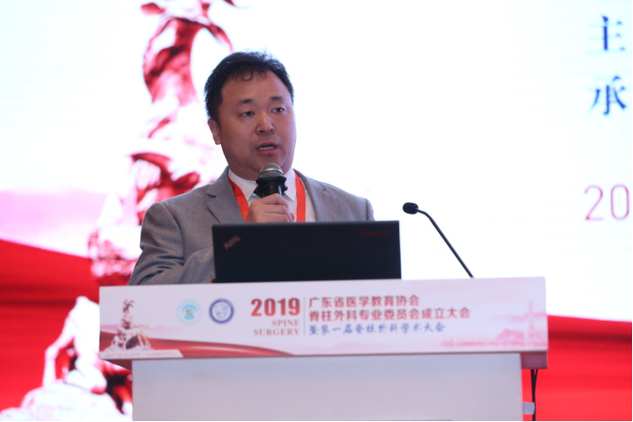 中华医学会骨科学分会第八届副主任委员、广东省医学会骨科学分会第八、九届副主任委员、广东省骨科研究院院长金大地教授受邀参会并致辞。他首先感谢全国各地专家对广东省脊柱骨科事业的支持和帮助。他说,广东省医学界有8个骨科学术团体,5个脊柱外科学术团体,参与人数多,学术热情高,彰显了广东省骨科学届蓬勃发展之势。他相信,广东省医学教育协会脊柱专委会一定能够成为各学术团体中的中坚力量,为广东医学事业做出贡献。