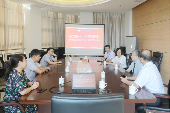 9月6日,南海医院为中医科罗学森医生举行了赴云浮扶贫支医欢送会,医院院长杜庆锋,里水镇卫计局局长、医院党委书记陈丽敏,副院长张鹏,工会主席宋代黎以及医务部相关负责人参加了会议。