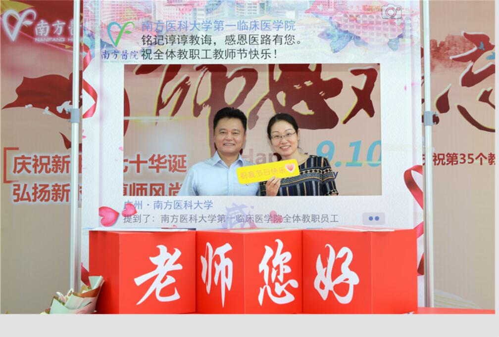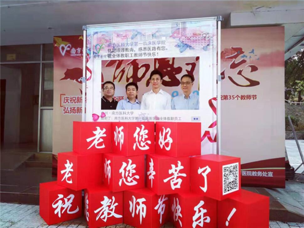 此外,学院教务处还通过全院印发教学表彰文件、制作展板、横幅、海报、门诊大厅循环播放教师节寄语幻灯等形式,营造良好的节日氛围。九万里风鹏正举,一临老师肩负教书育人和救死扶伤的双重使命,在南医的育人沃土上辛勤耕耘、硕果累累,为新中国七十周年华诞献礼。