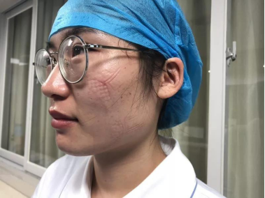十几个小时,穿戴口罩和防护面罩在脸上落下深深印记。