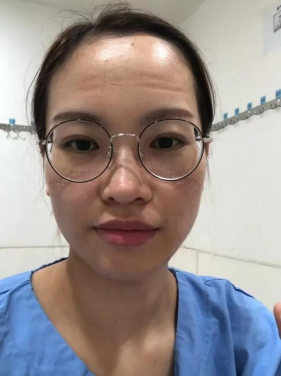 只要进入病区就必须穿上3层以上的防护服,连续4个小时不喝水不上厕所,出来后脸上总会带着光荣的印记,但忙碌的他,已忘记了印记上的疼痛!