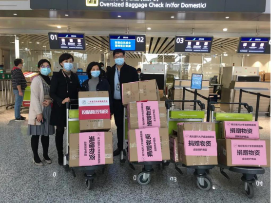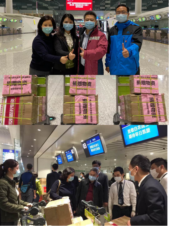 当得知前线医疗队急需皮肤药品的消息后,皮肤病医院党委书记、院长杨斌紧急调配药品带队奔赴广州白云机场,将援赠物资维生素E乳膏、尿囊素乳膏、红霉素软膏、红霉素眼膏等15000支皮肤外用药分批随广东医疗队运往湖北武汉、荆州等地,为前线战友们解燃眉之急。