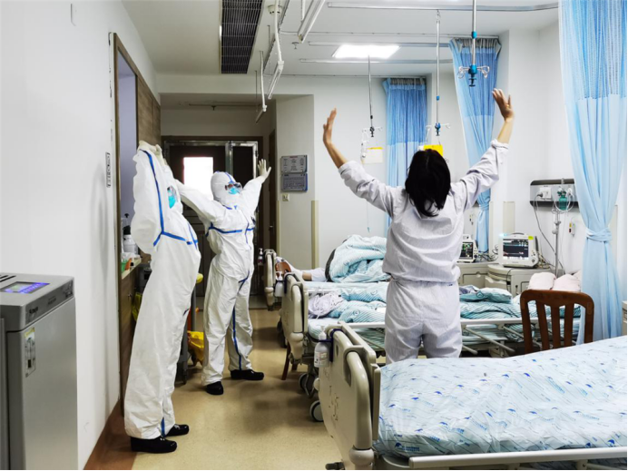 35天的武汉抗疫日子,护理部房洁新副主任每天与护理队员保持联系,提出科学分工、分组,提醒队员谨记防控工作不能松懈,并时刻关注每一位队员的身心健康。仁心仁术的护理天使们还在武汉市一医院病房内推广了南顺医护理品牌,她们耐心地把康复操、呼吸训练操一遍又一遍地教给患者;他们不仅时刻监护着患者的病情变化,还用爱心守护着每一位患者的心灵港湾,对他们及时开展心理疏导;并针对个案、疾病知识及落实防控归纳总结,准备发表论文素材等工作。在护理部的指导下,驰援武汉护理队员把各项防控建议落于实处,共提交4篇抗疫论文。我院的呼吸操、人文关怀、优质服务等一系列措施得到当地医院及患者的一致好评。