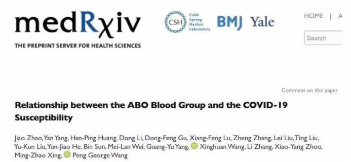 主要内容是说,南方科技大学、上海交大、武汉中南医院、武汉金银潭医院等8家单位的最新研究显示:A、B、O、AB血型与新冠肺炎易感性存在关联。这也是该领域的首份研究。具体来讲,研究认为,O型血对新冠肺炎相对不易感,风险较低;A型血对新冠肺炎相对易感,风险也较高。