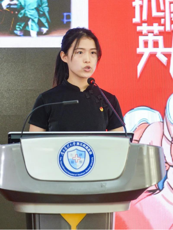 会上,大家观看了“青春使命共战疫,三院青年勇担当”战疫短视频,重温了习近平总书记给北京大学援鄂医疗队全体90后党员的回信。十名来自不同岗位的青年代表在会上分享了自己的抗疫故事, 三位援鄂医疗队青年队员分享了他们在武汉的抗疫故事和感悟,如何争分夺秒地抢救患者,如何悉心周到地照顾患者,如何打消患者的各种顾虑。七位来自医院不同岗位的青年代表也做了抗疫故事分享,他们立足岗位,讲述疫情发生以来自己的坚守和成长。