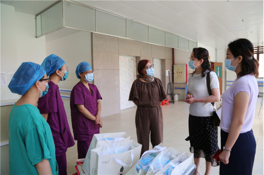6月5日,五附院副院长徐晓武带领医教部、护理部、工会、组织人事部等有关人员到广州白云机场、从化区敬老院密切接触集中医学隔离观察场所,以及入境人员集中隔离医学观察点等地,慰问了坚守在那里的一线医务人员,为他们带去了慰问品,带去了全院人员的关心和问候。