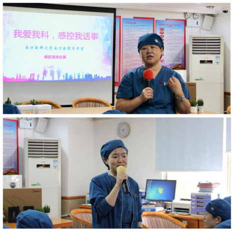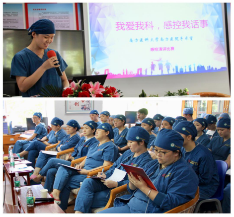 7月30日下午,南方医院麻醉科手术室开展“我爱手术室,感控我话事”主题演讲比赛在麻醉科手术室四楼会议室顺利举行。感控小组组长曾臻主持了演讲比赛,麻醉科张军花科护士长、手术室侯晓敏护士长、副主任护师钟奕、殷彬燕、卜文君、冯茜担任评委。