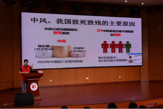 神经内科主任黄艺洪作题为《争分夺秒,为大脑护航》的讲课,他就脑梗死的常见病因、治疗手段等方面,结合实例进行了精彩分析与讲解,并以现场提问、赠送健康知识科普书籍和小型运动器材的形式与现场教职工开展互动。