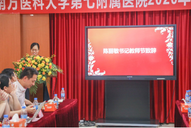 当天下午,医院召开了教师节师生座谈会,院长杜庆锋、医院党委书记陈丽敏等院领导、专家委员会全体委员、教师、学生代表参加了此次座谈会。会上,陈丽敏向全体教职员工致以诚挚的节日问候,并向与会人员介绍镇政府为推进全科医学学院建设给予的大力支持。