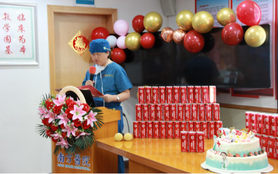 活动由科室教授刘卫锋、医师陈冰莎主持,护士长张军花诵读南方医院致全体医师的慰问信,传达医院领导对全院医师的节日祝贺与慰问。科室主任刘克玄带领全科医生宣读医师誓言。“敬佑生命,患者至上!”重温医师誓言让我们感到职业的崇高与神圣,更感到沉甸甸的责任与使命。