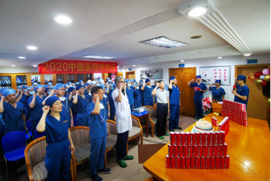 8月19日,“中国医师节”之际,南方医院麻醉科于早交班时间举办了简短而难忘的庆祝仪式,向奋战在临床救治与疫情防控一线的每一位医师致以诚挚的问候和崇高的敬意!科室全体医护人员参加了活动。
