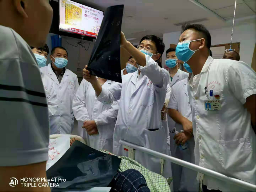 2020年11月28日饶平站义诊间隙,南方医科大学中西医结合医院脑病科黄仕营博士会诊一名重症患者,现场讲解了疾病的诊疗要点。在15场活动中,专家们通过现场授课、现场演示、开展疑难病例讨论会等形式,向基层医生传授实用临床经验。先后举办的15场中医适宜技术基层骨干师资培训班,更是让县镇医院、村卫生站的医生能够享受“学术大餐”,内容涵盖全经针刺法治疗中风病、透热针治疗顽固性肌筋膜源性颈腰背痛等中医特色技术。