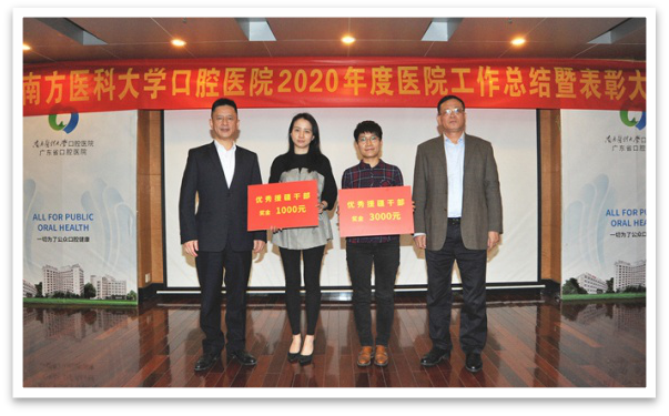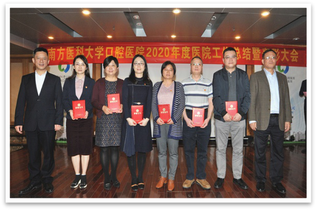 为进一步激励全院教职工担当作为,推动医院工作再上新台阶,2月5日,口腔医院召开2020年工作总结暨表彰大会,总结回顾过去一年医院各项工作,安排部署2021年重点工作任务,并对成绩突出的先进集体和个人进行表彰。会议由医院党委书记莫乔锋主持,医院领导班子成员,党支部书记、副书记、支部委员,行政科室负责人,临床、医技科室负责人、护士长等约120人出席会议,番禺院区和海珠广场院区同步召开视频会议。