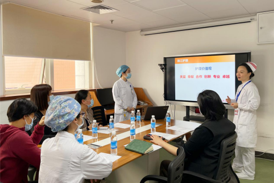 随后,内科片总护士长朱艳对珠江医院护理概况及近几年的专科护理发展展开介绍。放疗科护士长李菀丹从放疗科护理队伍的建设、病房管理、护理质量、护理教学、护理循证与科研等方面进行了介绍,带领南医五院护理同行参观了放疗科病房、放疗日间病房、放疗定位室及机房,并介绍了放疗科的护理专科特色,癌因性疲乏的管理、营养、无呕、无痛病房的建设、静脉输液管理等。