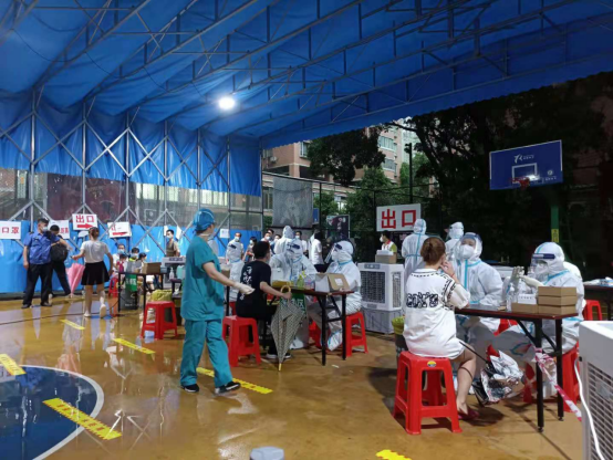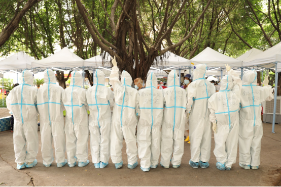 今天三批医护队伍分别在早上7:50、下午14:00和17:30出发前往海珠区各大社区开展核酸采样工作,医护队伍顶着高温和暴雨的恶劣天气,将社区群众健康安全责任扛在肩上,发誓坚决完成组织交给任务。